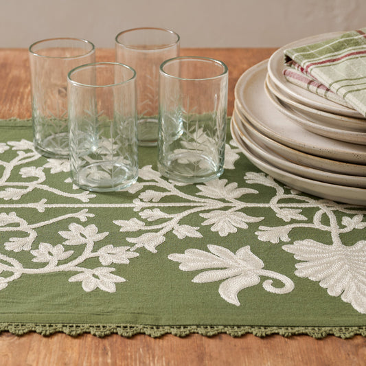 Winter Moss Embroidered Table Runner
