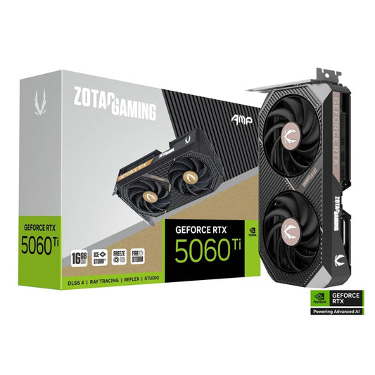 ZOTAC GAMING GeForce RTX 5060 Ti 16GB AMP Graphics Card - IceStorm 2.0 Cooling With BladeLink Fans, 3x Display Port / HDMI - (ZT-B50620F-10M)