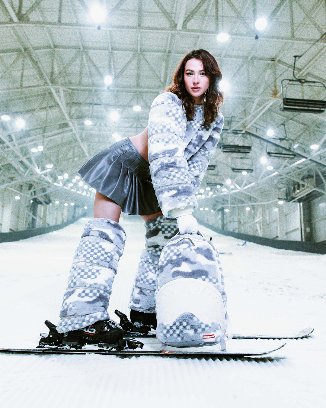 Dimensions: 18" x 6" x 11.5" • Front zipper pocket • Side pockets • Zippered Stash pocket • Separate velour sunglass compartment • Ergonomic mesh back padding • Adjustable Straps for custom sizing • Gold zippers with metal hardware • Metal "Sprayground Authentic" badge • Slide through back sleeve connects to carry-on luggage to free your hands