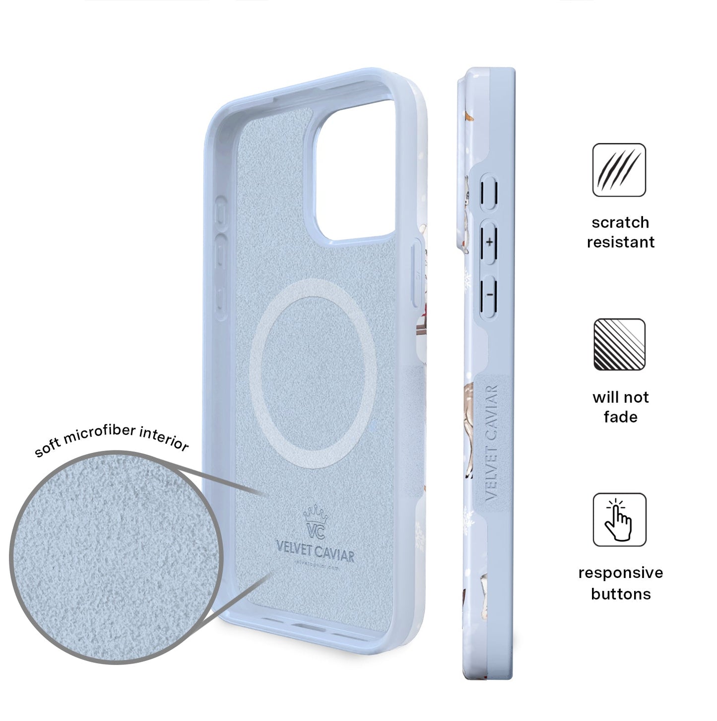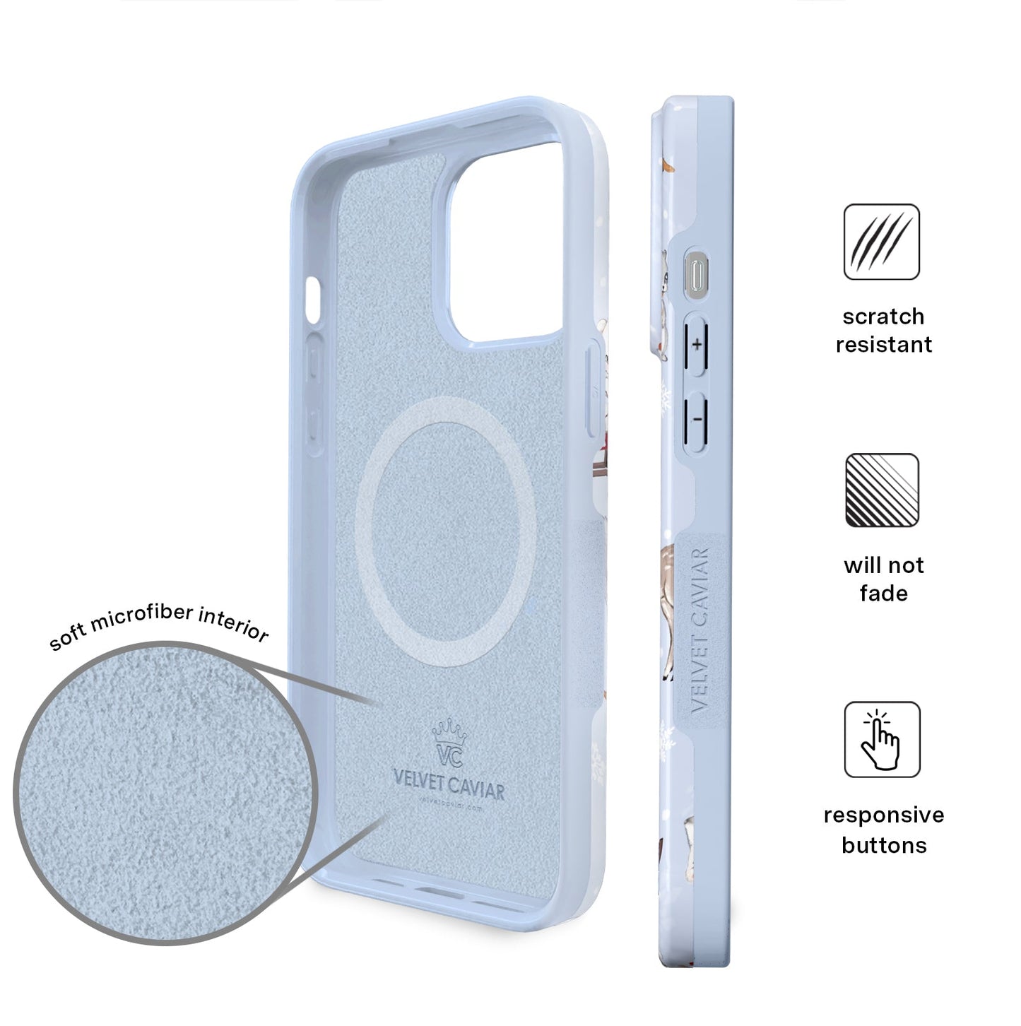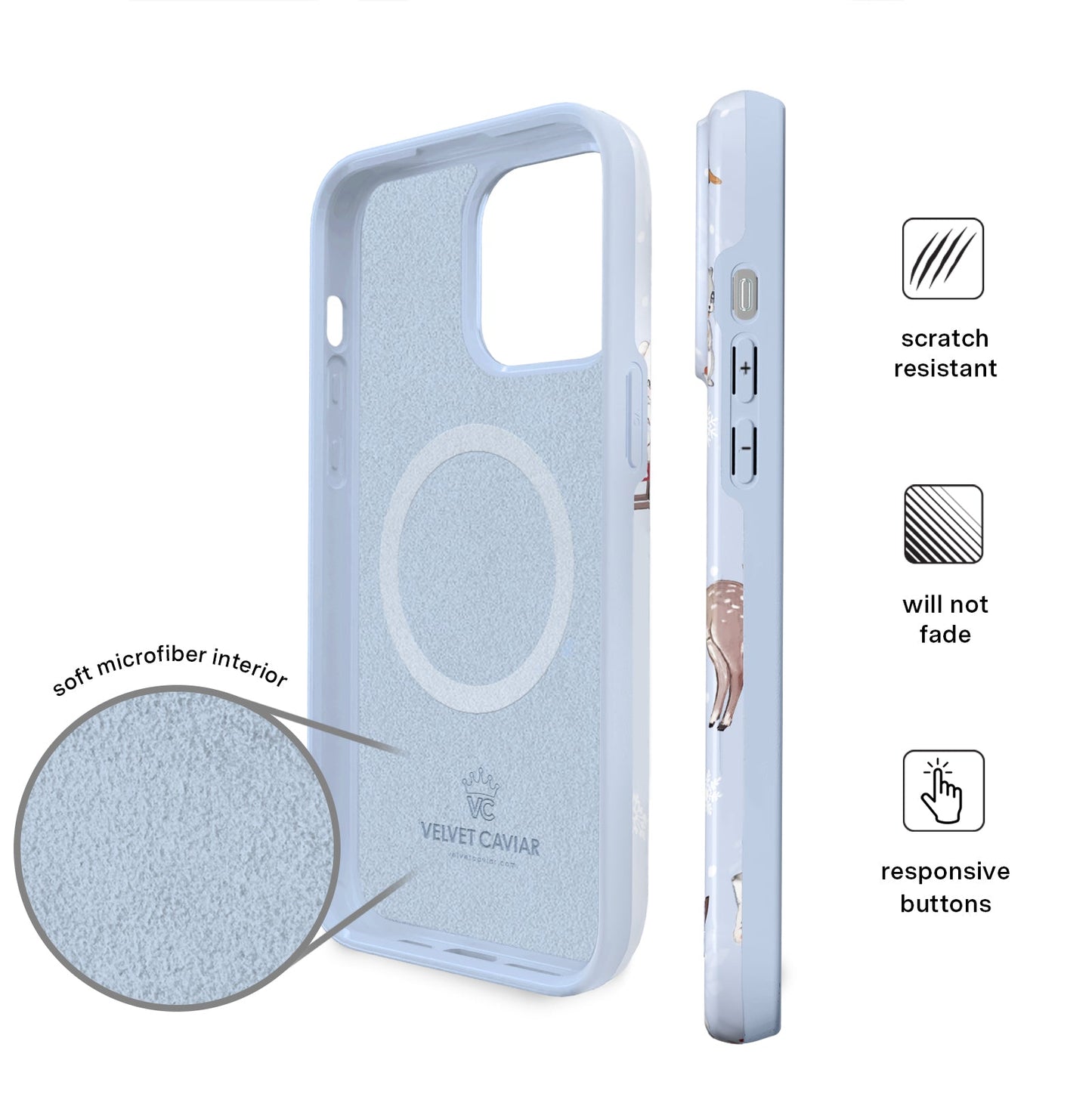 Happy Holidays! This protective glossy case features an icy blue base with an array of adorable retro baby animals with adorned in their holiday best. NOTE: This case is part of our Limited Edition Christmas Collection, perfect for cozy nights and Holiday parties!