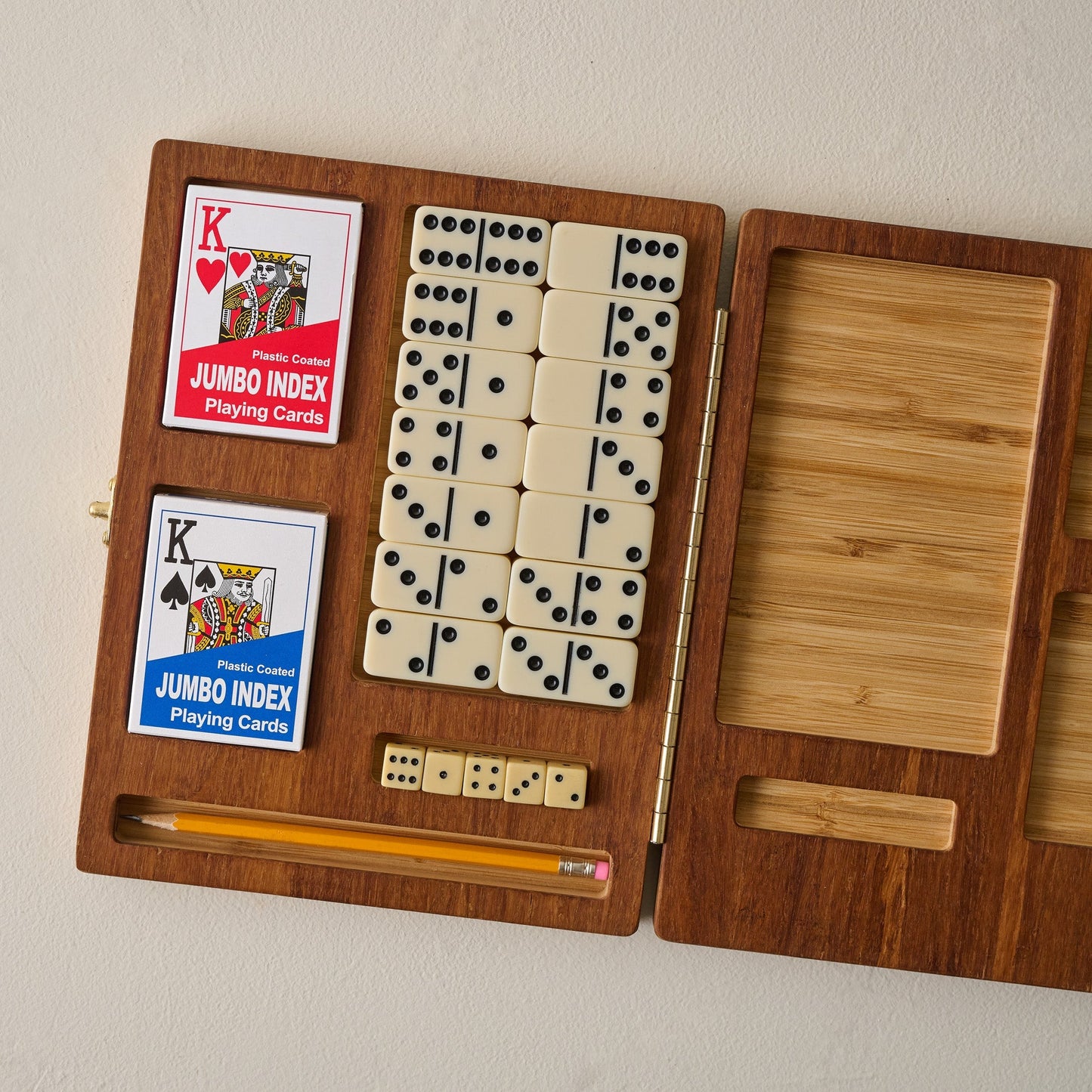Gather around the table and enjoy a timeless favorite cardgame. Reimagined with elegance and housed in a beautifully crafted wooden case, this refined poker set brings a sophisticated feel to any space while preserving the classic gameplay that stands the test of time.