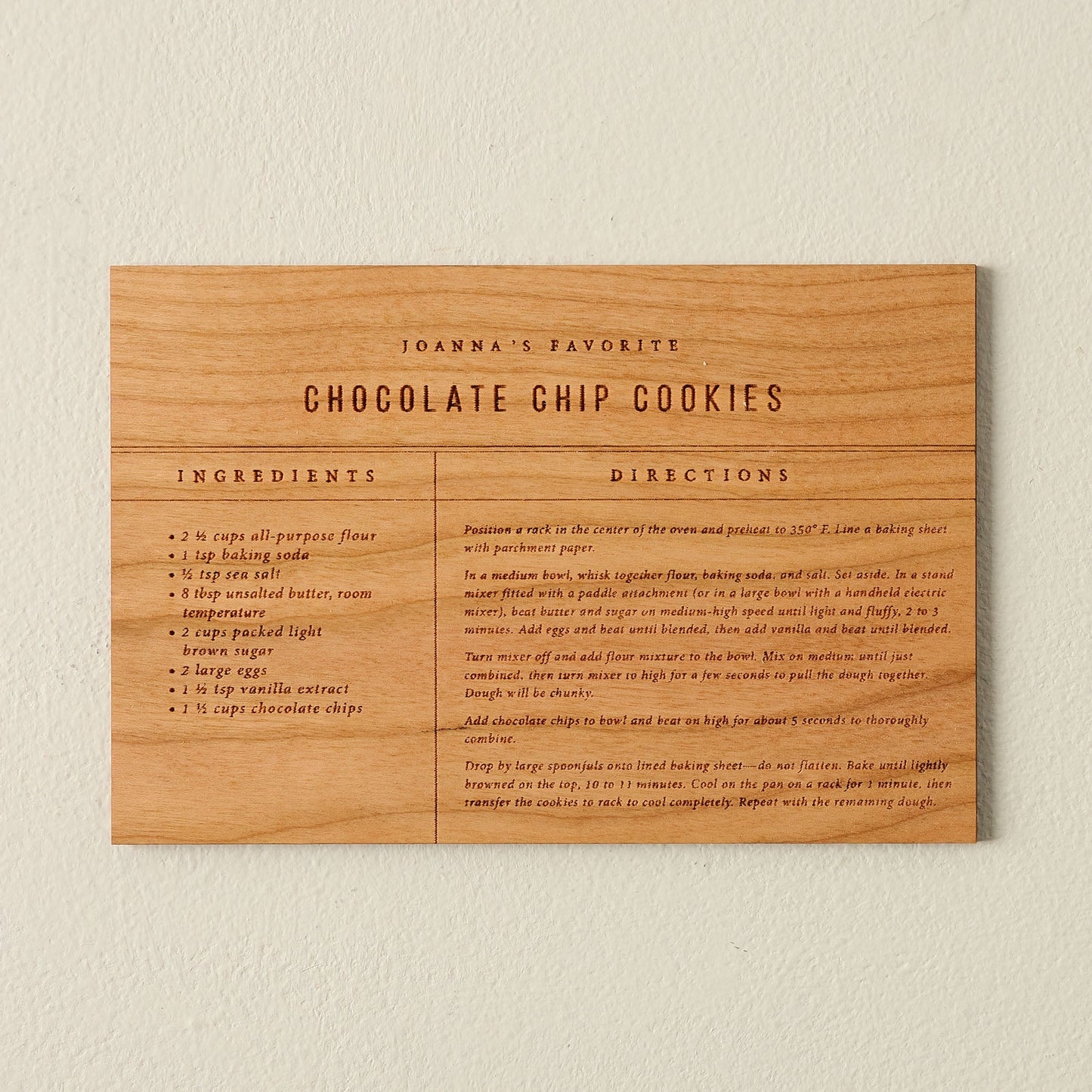 Featured in the Magnolia Table cookbook, this chunky chocolate chip was created by Joanna after years of experiments in her kitchen. Now available as an heirloom-quality, wooden recipe card, this is just the right size for your recipe box and is laser-engraved by an American artisan.