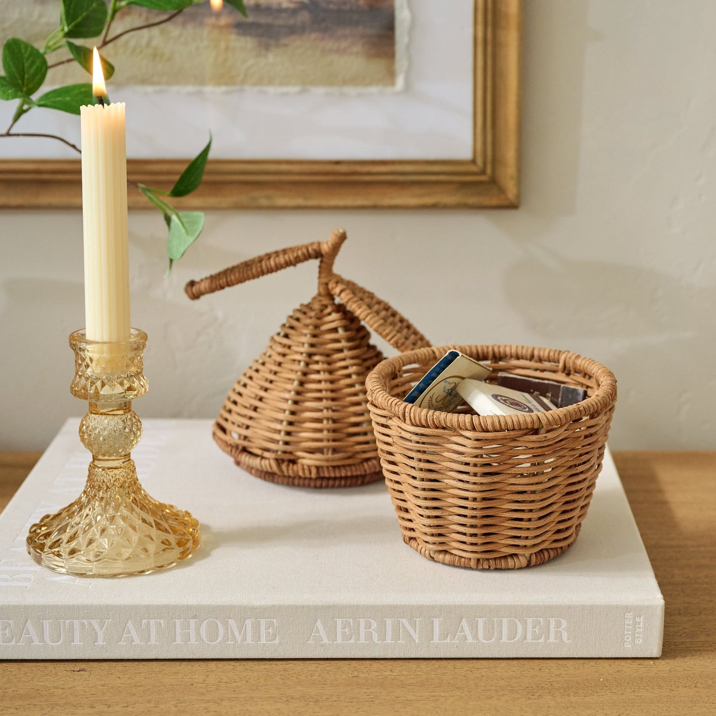 Taking on the charming shape of a lemon, this delightful canister showcases a classic woven texture and a uniquely whimsical silhouette. A darling spot for storing treasured keepsakes or displaying cherished trinkets, it blends playful design with practical elegance.
